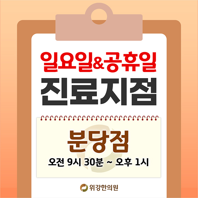 토/일/공휴일 진료: 오전 9시 30분 ~ 오후 1시