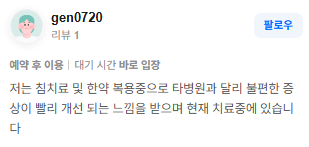 가감 없는 리얼후기 참고하시면 질환치료에 더욱 도움이 되실겁니다.