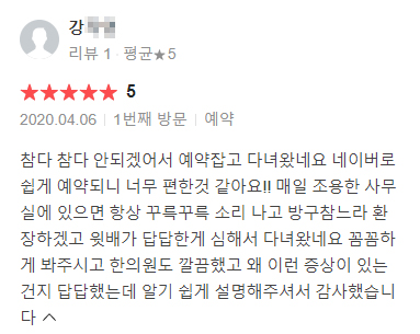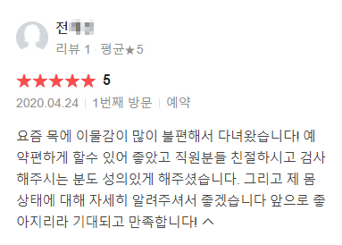 위강한의원에서 치료받은 실제 치료후기 리뷰를 모았습니다. 가감 없는 리얼후기 참고하시면 질환치료에 더욱 도움이 되실겁니다.