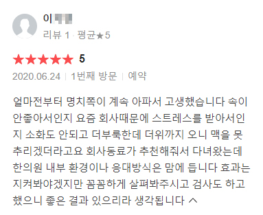 위강한의원에서 치료받은 실제 치료후기 리뷰를 모았습니다. 가감 없는 리얼후기 참고하시면 질환치료에 더욱 도움이 되실겁니다.