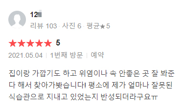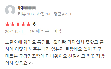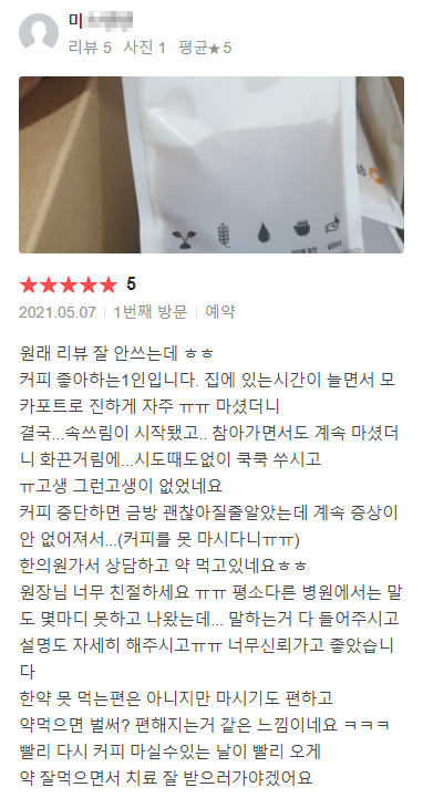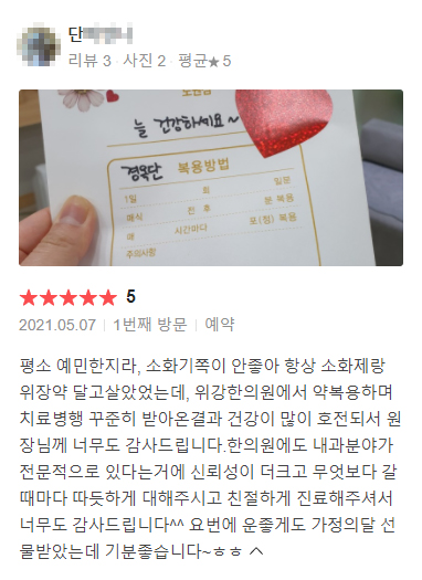 위강한의원에서 치료받은 실제 치료후기 리뷰를 모았습니다. 가감 없는 리얼후기 참고하시면 질환치료에 더욱 도움이 되실겁니다.
