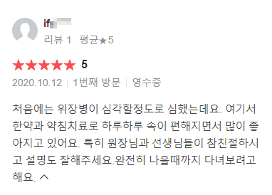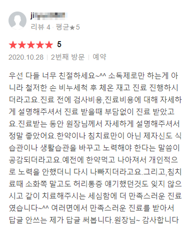 위강한의원에서 치료받은 실제 치료후기 리뷰를 모았습니다. 가감 없는 리얼후기 참고하시면 질환치료에 더욱 도움이 되실겁니다.