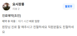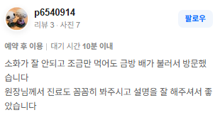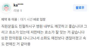 위강한의원에서 치료받은 실제 치료후기 리뷰를 모았습니다. 가감 없는 리얼후기 참고하시면 질환치료에 더욱 도움이 되실겁니다.