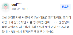 위강한의원에서 치료받은 실제 치료후기 리뷰를 모았습니다. 가감 없는 리얼후기 참고하시면 질환치료에 더욱 도움이 되실겁니다.