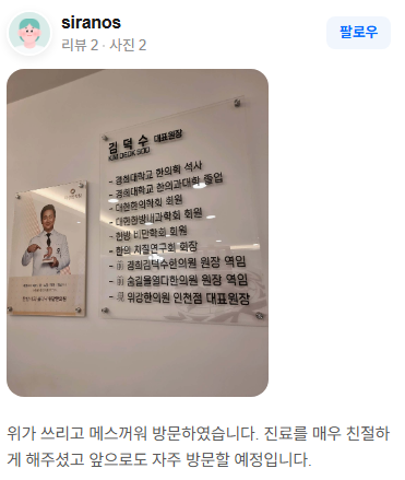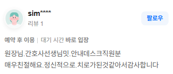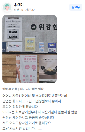 위강한의원에서 치료받은 실제 치료후기 리뷰를 모았습니다. 가감 없는 리얼후기 참고하시면 질환치료에 더욱 도움이 되실겁니다.
