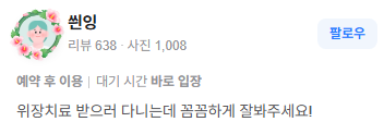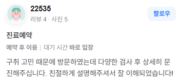 위강한의원에서 치료받은 실제 치료후기 리뷰를 모았습니다. 가감 없는 리얼후기 참고하시면 질환치료에 더욱 도움이 되실겁니다.