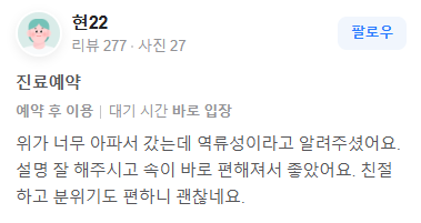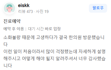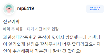 위강한의원에서 치료받은 실제 치료후기 리뷰를 모았습니다. 가감 없는 리얼후기 참고하시면 질환치료에 더욱 도움이 되실겁니다.